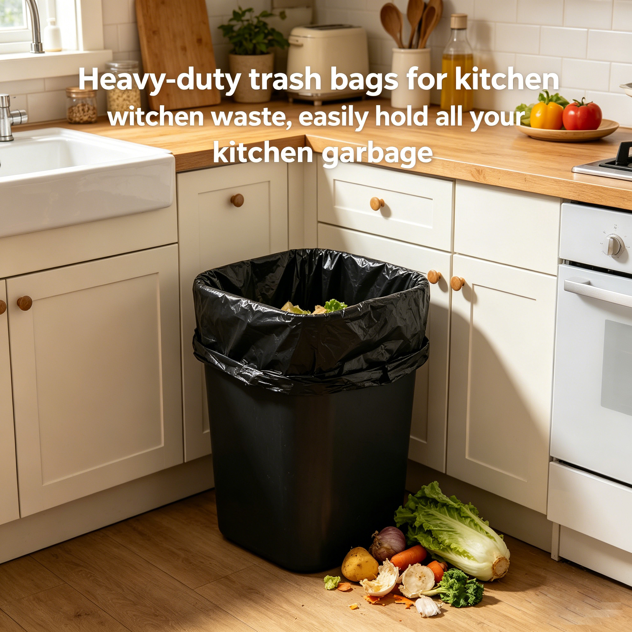 Heavy Duty Black Trash Bags, Large Capacity Flat Mouth Garbage Bags, Thick Leak-Proof Disposable Waste Bags For Household Kitchen, Bathroom, Office, Daily Household Waste Storage Use
