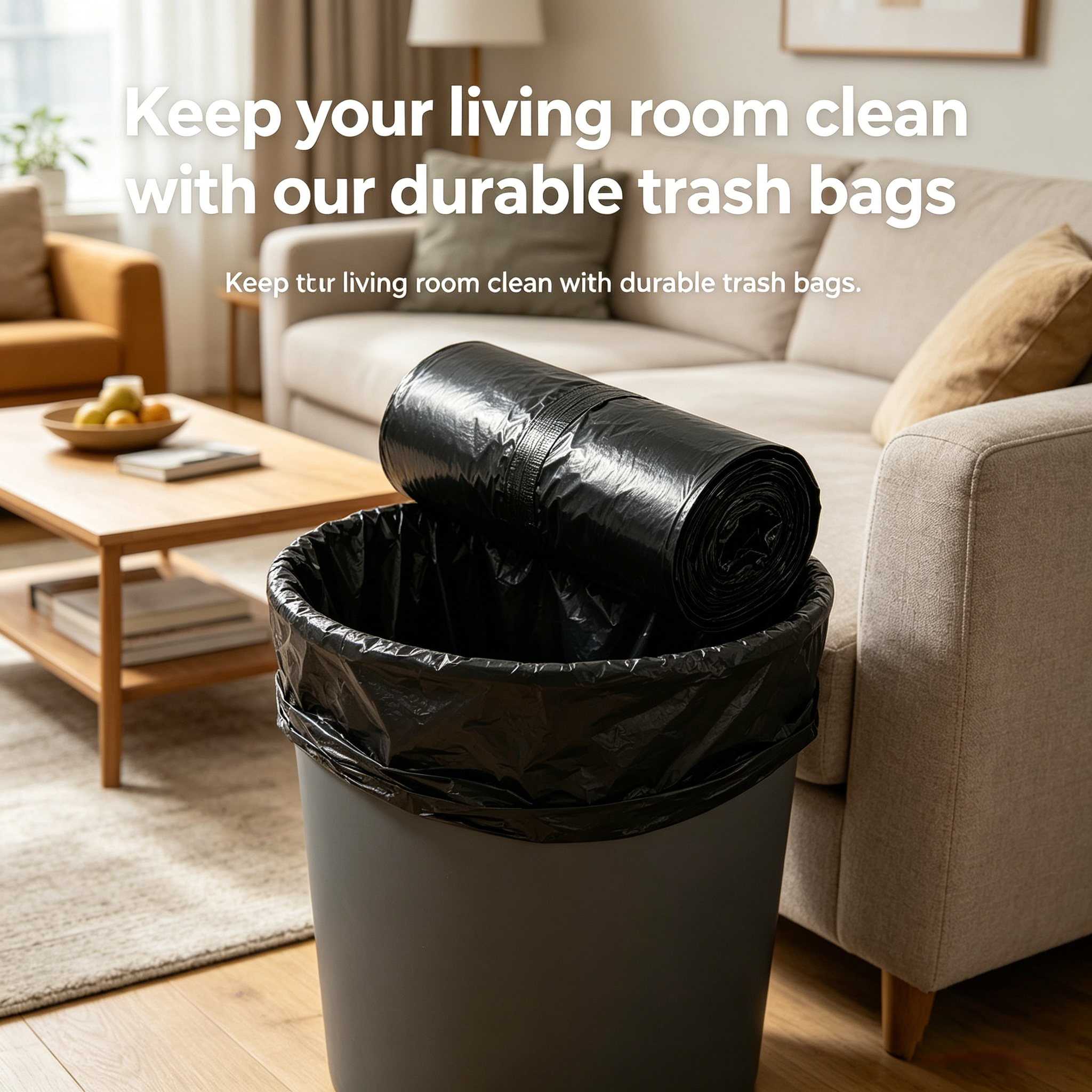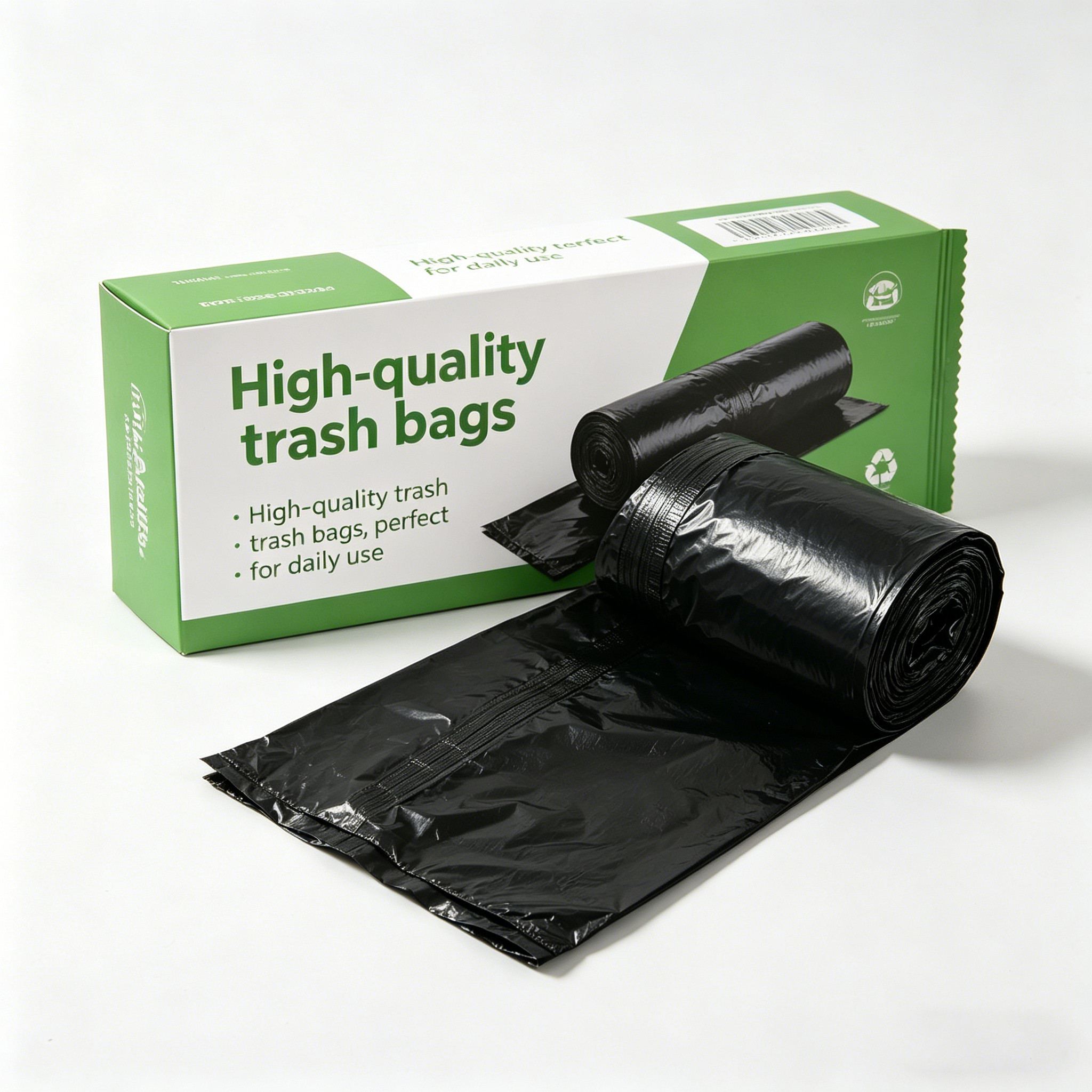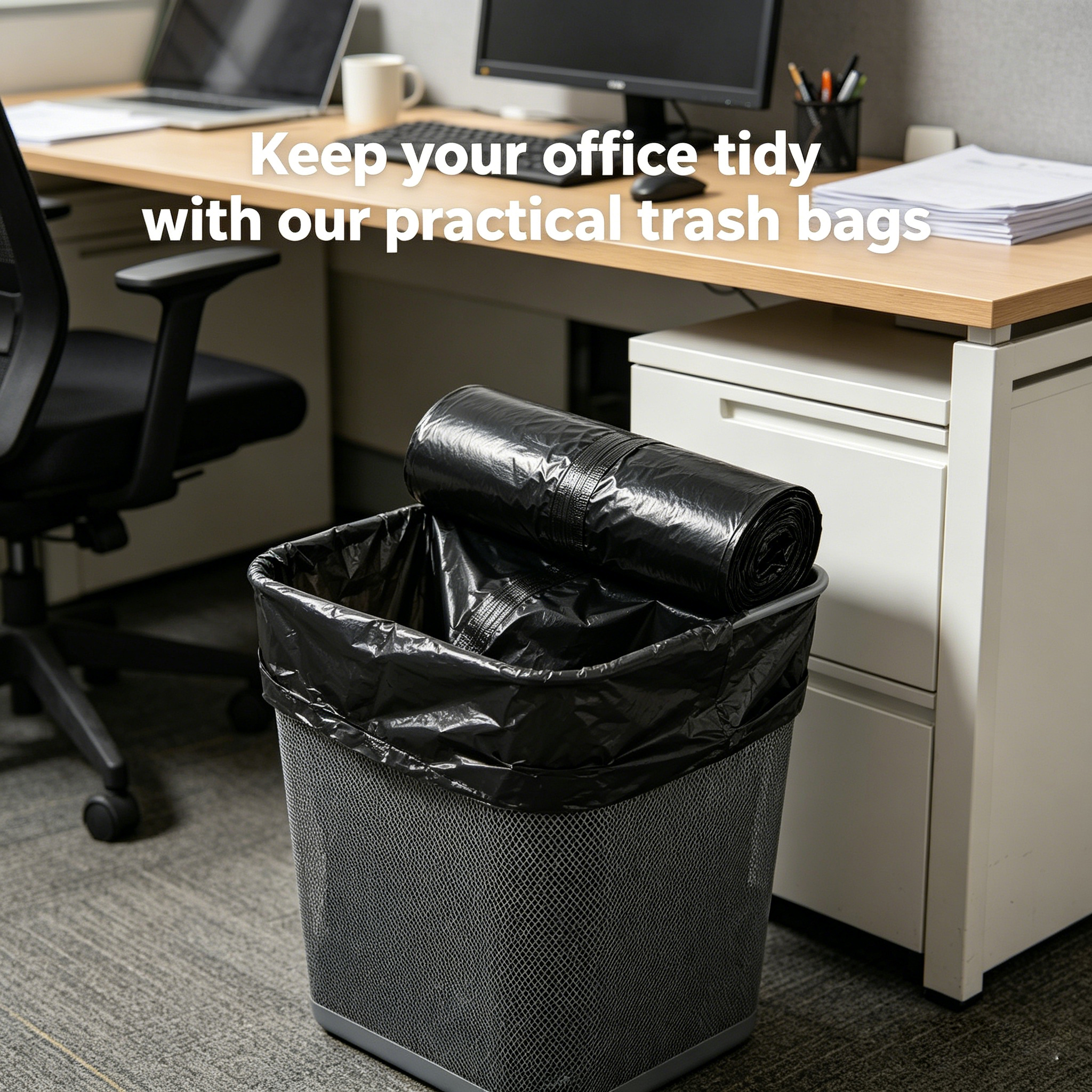 1 Roll of thick leak-proof black household trash bags for daily kitchen & bathroom use.中文直译